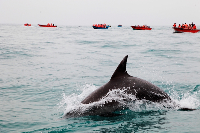 دلفینهای آبهای بین جزیره قشم و جزیره هنگام هر ساله گردشگران زیادی را به این منطقه