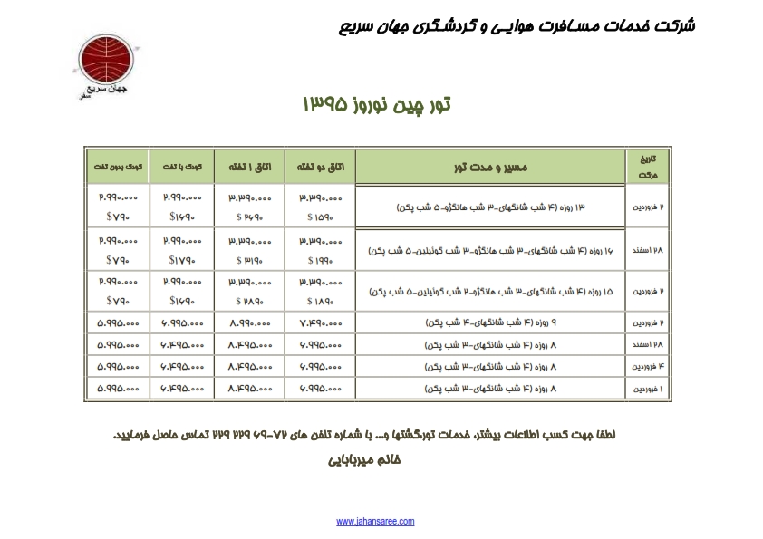 تور چین نوروز 1395 کد : نوروز